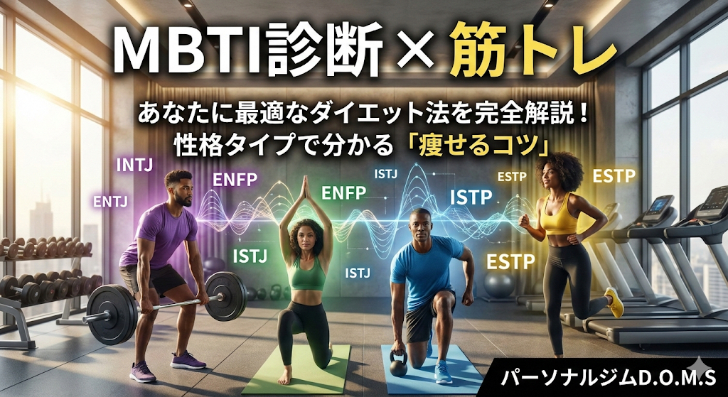 【MBTI診断別】あなたに最適な筋トレ&ダイエット法を完全解説!性格タイプで分かる「痩せるコツ」と「挫折パターン」 | パーソナルジムD.O.M.S