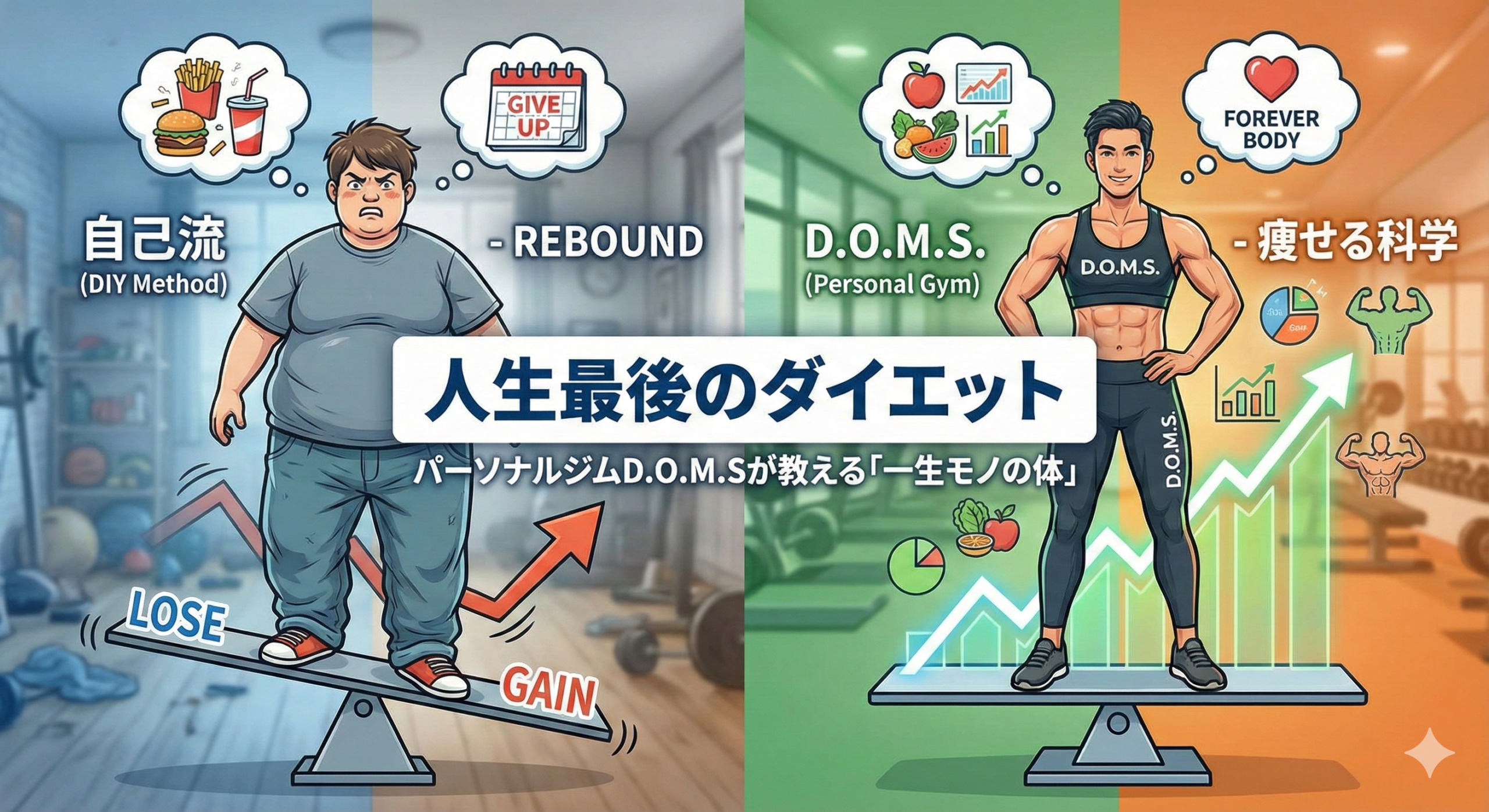 【人生最後のダイエット】なぜ自己流はリバウンドするのか?パーソナルジムD.O.M.Sが教える「痩せる科学」と「一生モノの体」